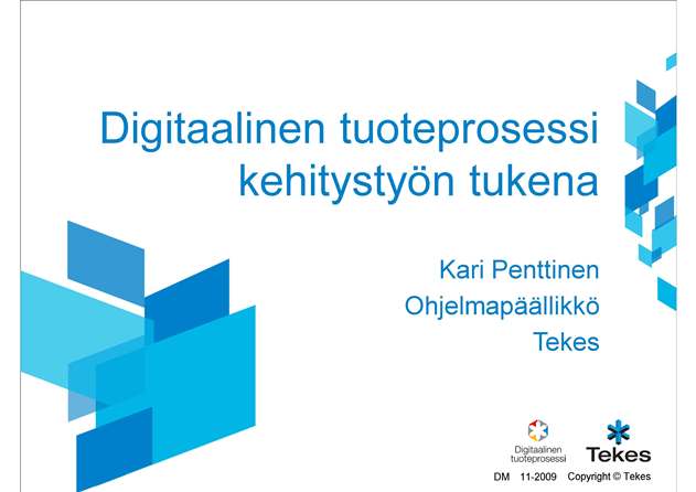 Digitaalinen tuoteprosessi kehitystyön tukena Kari Penttinen, Ohjelmapäällikkö, Tekes