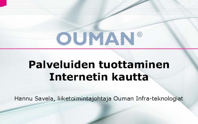 Palvelujen tuottaminen internetin kautta Liiketoimintajohtaja Hannu Savela, Ouman Oy / Infra Technologies