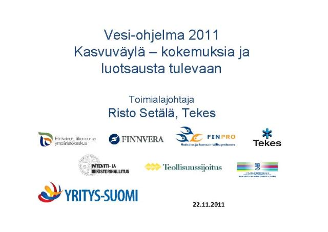 Kasvuväylä – kokemuksia ja luotsausta tulevaanToimialajohtaja Risto Setälä, Tekes